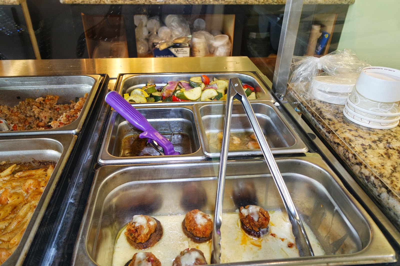 Upon entrance it’s a small space with a lot of character and warmth. We were greeted by two friendly workers. They made us feel right at home. Very similar to that of a neighborhood restaurant. There is a section with the beverages, salads and sandwiches. The sandwiches can be heated as a panini sandwiches.